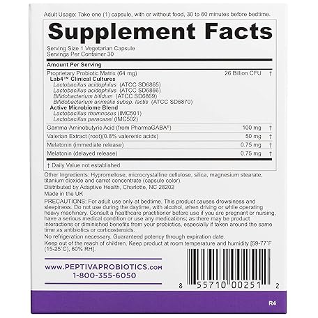 Sản phẩm Peptiva 26 Billion CFU Probiotic and Sleep Support - Clinically Validated Multi-Strain Probiotic - Lactobacillus and Bifidobacterium, Melatonin - 30 Count đang được bán với giá ưu đãi là $8.175 tại nước Mỹ.