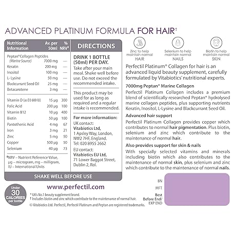 Sản phẩm Perfectil by Vitabiotics Platinum Collagen Hair Drink 10 x 50ml đang được bán với giá ưu đãi là $72.5395 tại nước Mỹ.