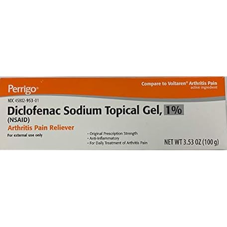 Sản phẩm Perrigo Diclofenac Sodium (NSAID) Topical Gel, 1% with dosing Card., 3.53 oz (100 g), arthrits Pain Relief Anti inflamatory for Hand, Wrist, Elbow, Foot, Ankle, Knee. Compare to VOLTAREN 1% Gel. đang được bán với giá ưu đãi là $15.9903 tại nước Mỹ.