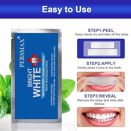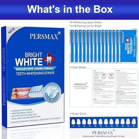 Thông tin sản phẩm PERSMAX Teeth Whitening Strips – Professional Dentist Approved, Gum-Safe Formula, 28 Non-Slip Strips Kit, 14 Treatment, Pain-Free Express Whitening in 30 Min, Easy to Use for Bright Smile