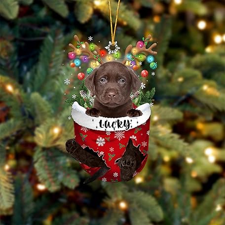 Personalized Chocolate Labrador Dog Christmas Ornament in Snow Pocket, Chocolate Labrador Ornament, Custom 2D Flat Shape Ornaments with Pet Name, Christmas Tree Ornaments, Gifts for Dog Lovers