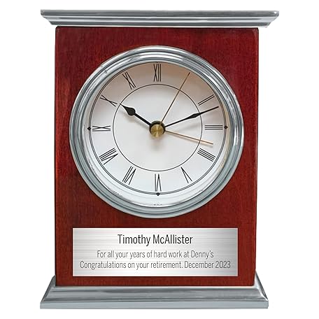Personalized Clock with Alarm for Desk or Shelf - AA Battery Included - Customized Retirement Gifts, Service Award Gift, Employee Recognition or Trophy - Customize Now!