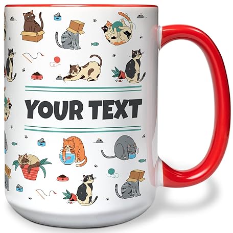 Personalized Mug for Kids - Cats - Custom Name/Text, Ceramic Hot Chocolate/Cocoa/Coffee Cup for Boys/Girls, Birthday/Christmas/Holiday Gift - 15 oz, Black Handle