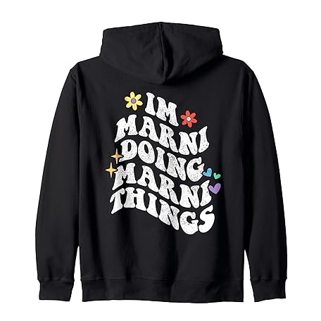 Personalized Name Mothers Day outfit For Women Retro Groovy Im Marni Doing Marni Things Funny Mother's Day Zip Hoodie