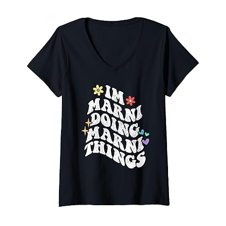 Personalized Name Mothers Day outfit For Women Womens Retro Groovy Im Marni Doing Marni Things Funny Mother's Day V-Neck T-Shirt