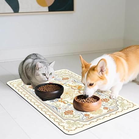 Thông tin sản phẩm Pet Feeding Mat, Absorbent Cat Dog Mat for Food and Water Bowls Floors, No Stains Quick Dry Cat Dog Feeding Water Bowl Mats for Sloppy Drinkers, Pet Feeding & Watering Supplies (Boho, 16"x 24")