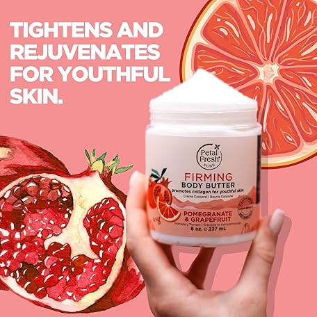 Thông tin sản phẩm Petal Fresh Pure Firming Pomegranate & Grapefruit Body Butter, Organic Coconut Oil, Argan Oil, Shea Butter, Promotes Collagen, For All Skin Types, Natural Ingredients, Vegan and Cruelty Free, 8 oz