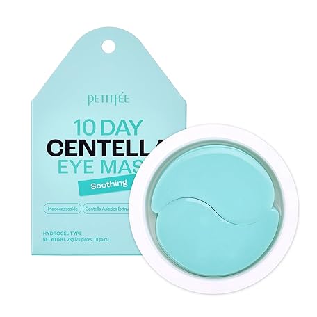 Petitfee 10 DAY Eye Mask Centella 20pcs (10pairs) - Soothing Eye Patch, Calming Eye Area with Madecassoside, Centella Asiatica Extract, Asiaticoside, travel friendly, lightweight
