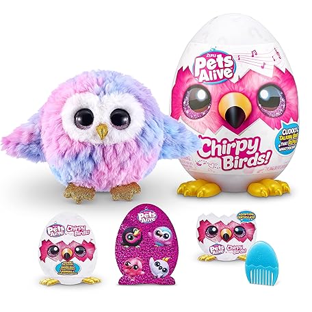 Thông tin sản phẩm Pets Alive Chirpy Birds (OWL) by ZURU, Electronic Pet That Speaks, Giant Surprise Egg, Stickers, Comb, Fluffy Clay, Bird Animal Plush for Girls
