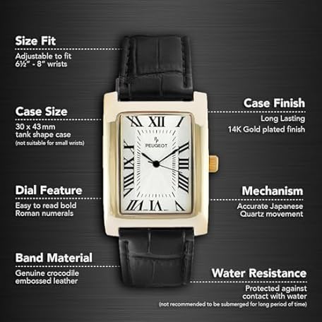 Thương hiệu Peugeot là cái tên nổi tiếng được rất nhiều khách hàng trên thế giới chọn lựa. Với kiểu dáng đẹp mắt, sang trọng, sản phẩm Peugeot Men’s Vintage Tank Shape 14K Gold Plated Wrist Watch with Roman Numeral Dial là sự lựa chọn hoàn hảo nếu bạn đang tìm mua một món cho riêng mình.