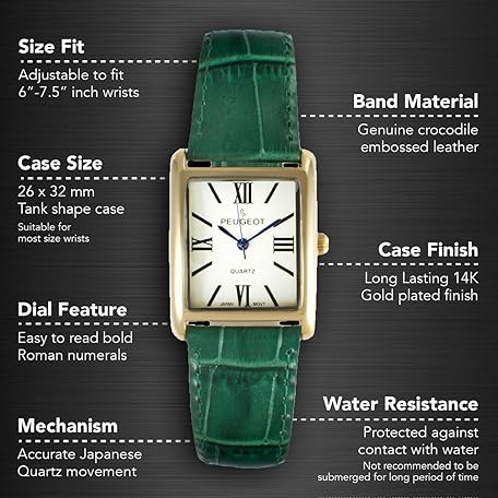 Sản phẩm Peugeot Women's 14K Gold Plated Tank/Silver-Tone Tank Leather Dress Watch with Roman Numerals Dial đang được bán với giá ưu đãi là $65.0621 tại nước Mỹ.