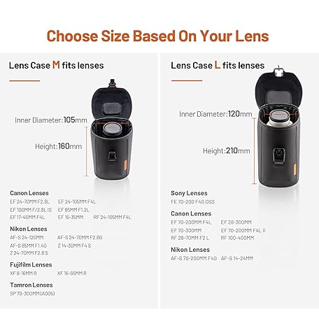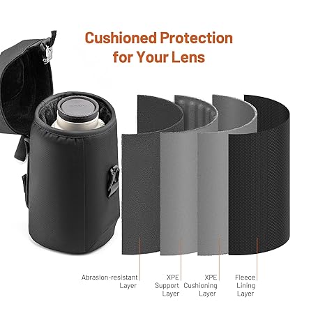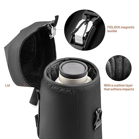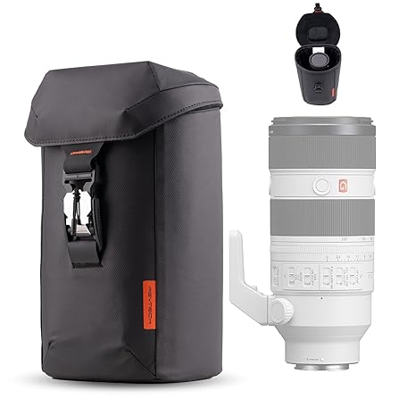 PGYTECH Camera Lens Bag, Magnetic Buckle Camera Lens Case, Water Resistant Protective Lens Pouch for DSLR Camera Lens, Thick Camera Lens Bag for Sony, Nikon, Canon Size L