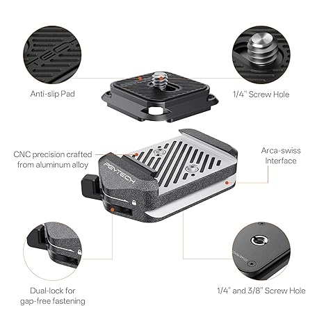 PGYTECH Quick Release Plate & Clamp V2 Kit, Arca Swiss Plate Camera Mount with 1/4" to 3/8" Screw Thread for Sony/Nikon/Fuji/DJI Switch Between Tripod/Monopod/Slider/Stabilizer(Two Clamps+Plate)