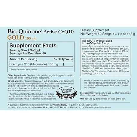 Thông tin sản phẩm Pharma Nord Bio-Quinone Gold Coenzyme Q10 100mg | The Original CoQ10 | High Absorption, Backed by Research | Essential Antioxidant for Energy, Heart Health and Fertility Support* | 150 Softgels