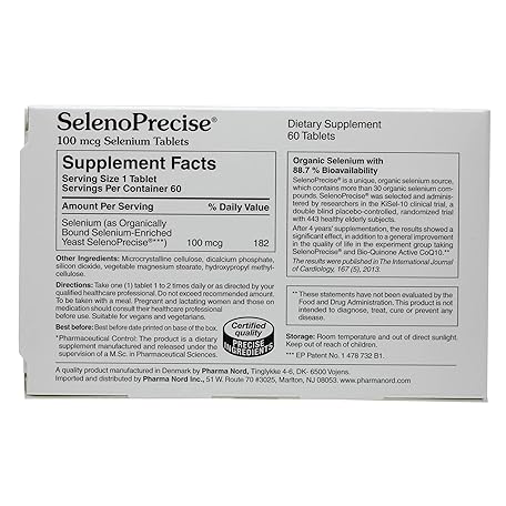 Thông tin sản phẩm Pharma Nord Selenium 100 mcg | SelenoPrecise | Thyroid Support, Immune System, Antioxidant Protection & Heart Health | Guaranteed 88.7% Absorption | 60 Tablets