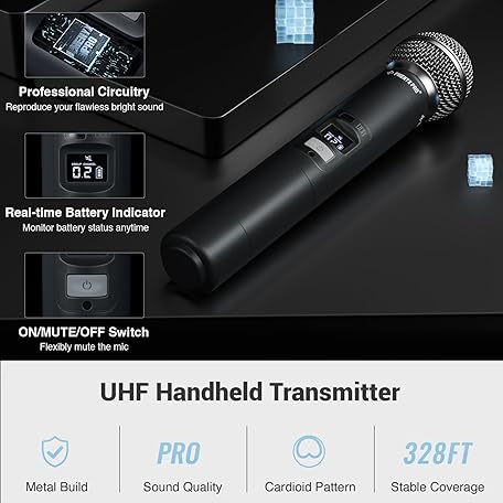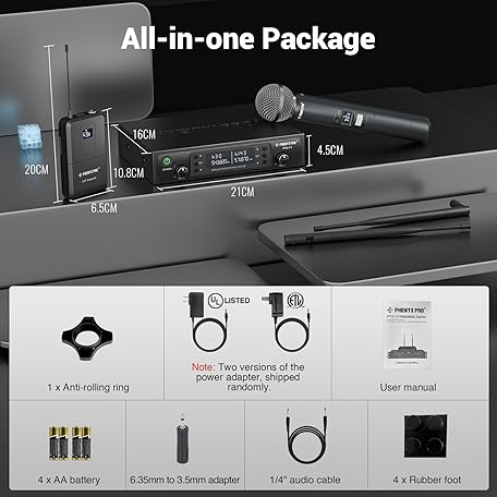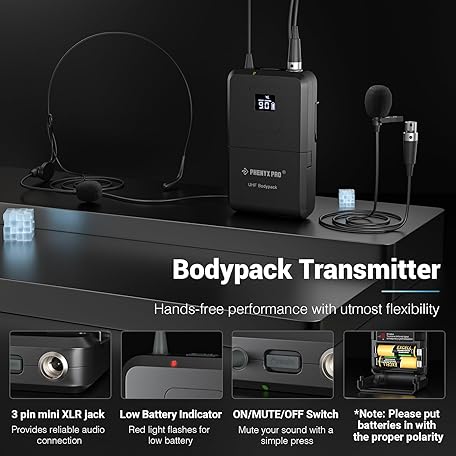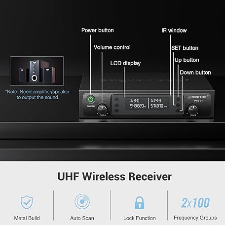 Thông tin sản phẩm Phenyx Pro Wireless Microphone System, Dual Mic Set with Handheld/Bodypack/Lapel Mics,Auto Scan, 2x100 UHF Frequencies,328ft Range,Cordless Microphone for Singing, Karaoke, Church(PTU-71-1H1B)