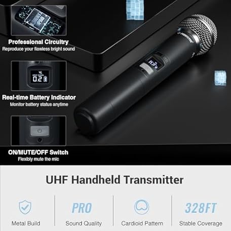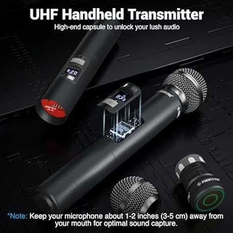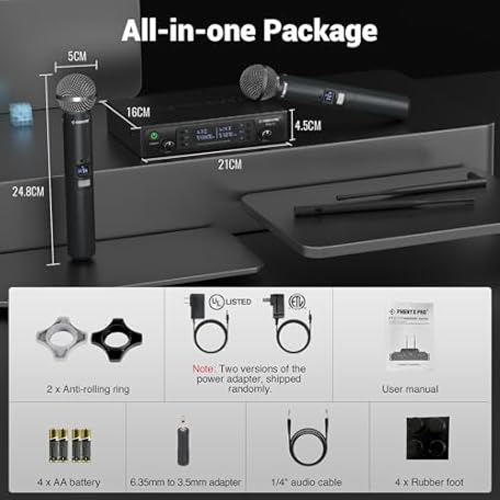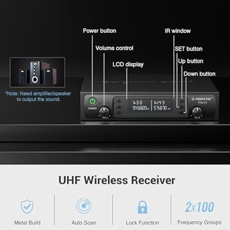 Thông tin sản phẩm Phenyx Pro Wireless Microphone System, Dual Wireless Mics,w/ 2 Handhelds, Auto Scan,2x100 UHF Frequencies,328ft Range,Dynamic Microphone for Singing, Karaoke, Church(PTU-71-2H)