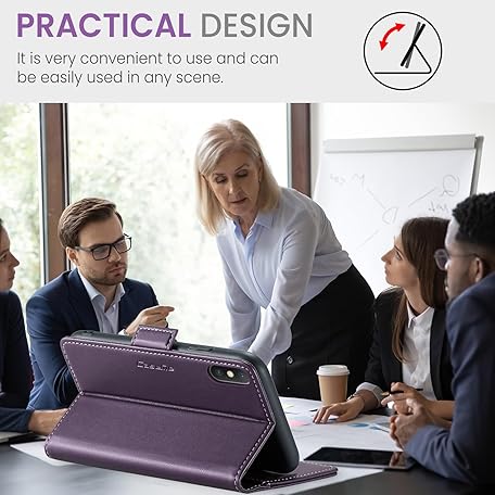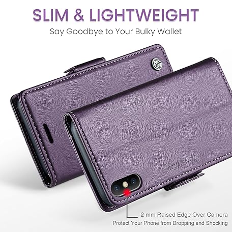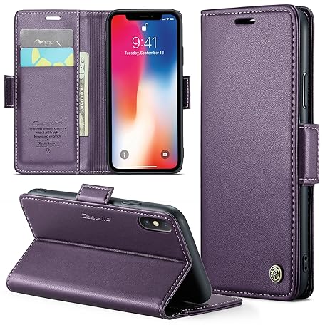 Phernykas Case for iPhone X & iPhone Xs Wallet Case with Card Holder, Kickstand RFID Blocking Magnetic Closure Shockproof Protective PU Leather Cover for iPhone X & iPhone Xs Flip Wallet - Purple