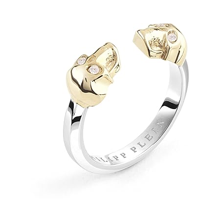 Philipp Plein Womens Two Tone 3D $kull Crystal Ring
