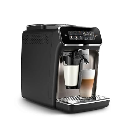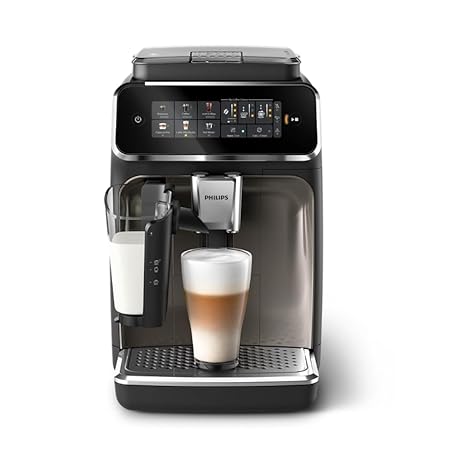 Thông tin sản phẩm PHILIPS 3300 Series Fully Automatic Espresso Machine - LatteGo Milk System, 5 Coffee Varieties, Intuitive Touch Display, SilentBrew, 100% Ceramic Grinder, AquaClean Filter, Glossy Black (EP3347/90)