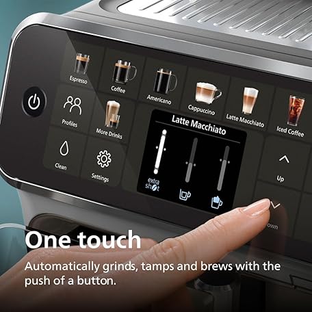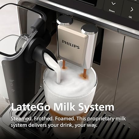 Thông tin sản phẩm Philips 5500 Series Fully Automatic Espresso Machine - LatteGo Milk System, 20 Coffee Varieties, Intuitive Touch Display, SilentBrew, 100% Ceramic Grinder, AquaClean Filter (Grey Chromed)