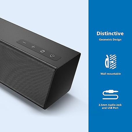 • PHILIPS B5306 2.1-Channel Soundbar with Wireless Subwoofer & Roku TV Ready, Black
