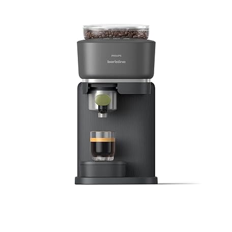 PHILIPS Baristina Espresso Machine, Grind, Tamp & Brew Coffee Beans in One Swipe, Compact, 16 Bar Pump Pressure, Automatic Grinder, Black with Natural Green Portafilter (BAR321/64)
