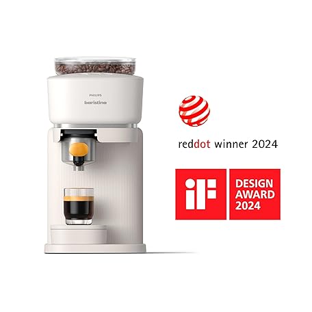 Philips Baristina Espresso Machine, Grind, Tamp & Brew Coffee Beans in One Swipe, Compact, 16 Bar Pump Pressure, Automatic Grinder, White with Mango Portafilter (BAR310/50)