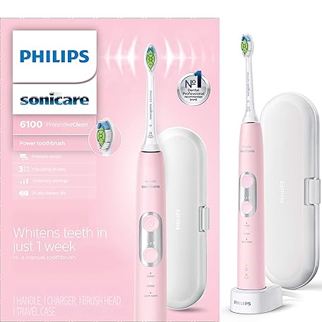 Thông tin sản phẩm Philips Sonicare ProtectiveClean 6100 Rechargeable Electric Toothbrush, with Pressure Sensor, 3 Cleaning Modes, SmarTimer and QuadPacer, 14-Day Battery Life, Travel Case, Pink, Model HX6876/21