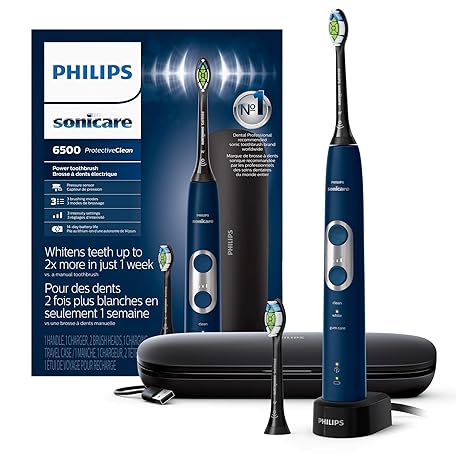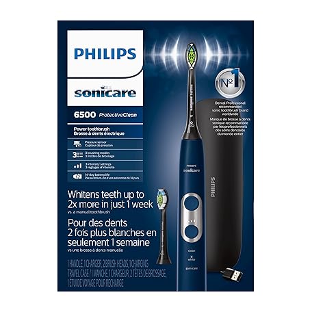Thương hiệu Philips Sonicare là cái tên nổi tiếng được rất nhiều khách hàng trên thế giới chọn lựa. Với kiểu dáng đẹp mắt, sang trọng, sản phẩm Philips Sonicare ProtectiveClean 6500 Rechargeable Electric Toothbrush, with Pressure Sensor, 3 Cleaning Modes, SmarTimer and QuadPacer, 14-Day Battery Life, Charging Travel Case, Navy Blue, HX6462/07 là sự lựa chọn hoàn hảo nếu bạn đang tìm mua một món cho riêng mình.