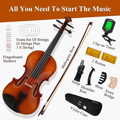 Thông tin sản phẩm PHOENIX Violin 4/4 Full Size Kit, Violin Fiddle Set for Beginner Adults Student with Rosewood Bow Extra Strings & Bridge (Entry-level, Full)