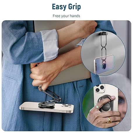 Sản phẩm Phone Ring Holder Finger Kickstand 360°Rotation Cellphone Back Grip Foldable Cell Phone Stand for Desk Compatible with iPhone iPad Smartphones Tablets (Black) đang được bán với giá ưu đãi là $13.0691 tại nước Mỹ.