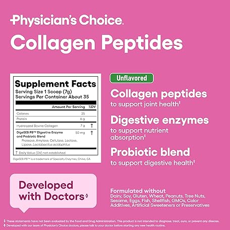 Thông tin sản phẩm Physician's CHOICE Collagen Peptides - Hydrolyzed Protein Powder for Hair, Skin, Joints - Grass Fed, Non-GMO