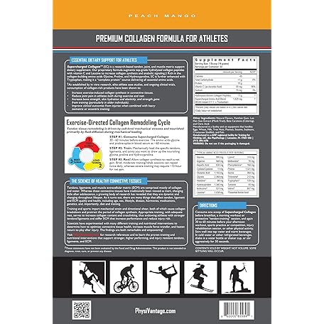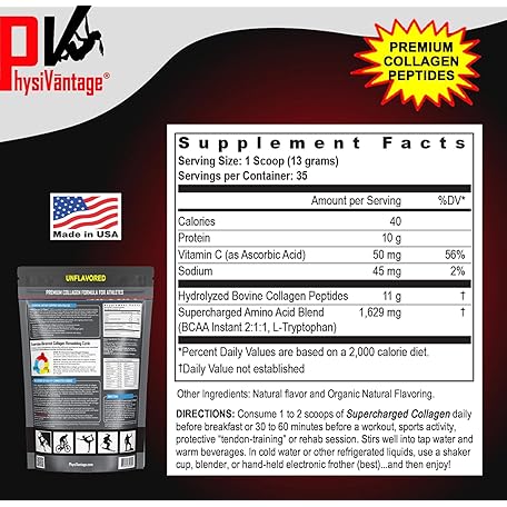 Thông tin sản phẩm PhysiVantage Supercharged Collagen Peptides Powder - Hydrolyzed Collagen for Joint, Tendon, Ligament, & Skin Health Support - Peach Mango, Keto, Paleo, 16oz | Enhanced with Vitamin C, BCAAs, Grass-Fed