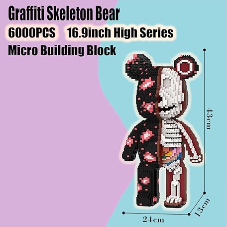PIANTION Animal Graffiti Skeleton Bear Micro Building Blocks Set(6000PCS XQ001) 16.9in High Series,Gifts Suitable for Adults