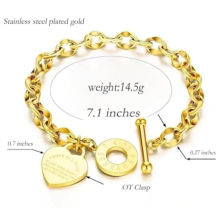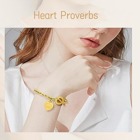 Sản phẩm pichuxiu Heart Charm Bracelet Plated 18K Gold/Silver/Rose Gold Bible Scripture Heart Bracelet for Women Jewelry Gift Zircon Her Link Chain OT Clasp Stainless Steel Birthday đang được bán với giá ưu đãi là $9.0688 tại nước Mỹ.
