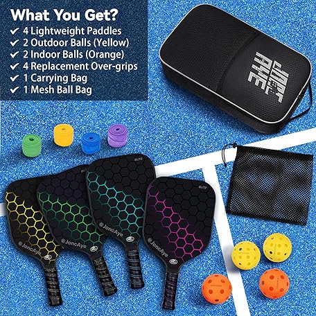Thông tin sản phẩm Pickleball-Paddles-Set of 4 or 2 Rackets by JoncAye, USAPA Approved Pickle-Ball Equipment with Balls, Bag, Accessories, Fiberglass Graphite Pickleball Racquet Set for Men, Women, Kids, Adults