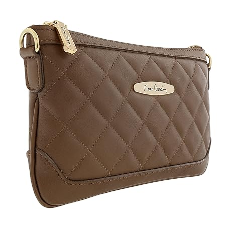 Pierre Cardin Dark Taupe Leather Quilted Crossbody Bag