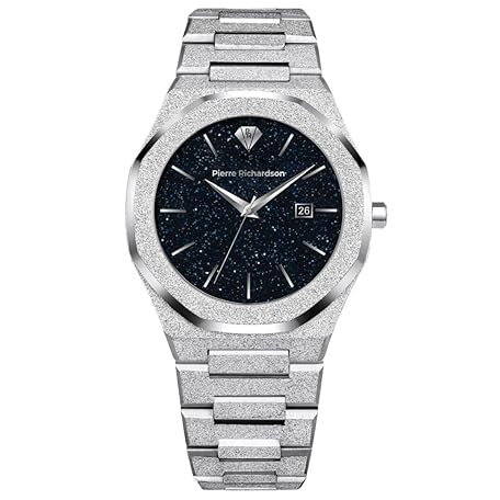 Thông tin sản phẩm Pierre Richardson Men’s Luxury Watch PR5691 – Silver Frosted Stainless Steel Japanese Quartz, 41mm, 5ATM Water Resistant, Scratch-Resistant Sapphire Crystal Glass, Elegant Dress Watch for Men, Reloj para Hombres