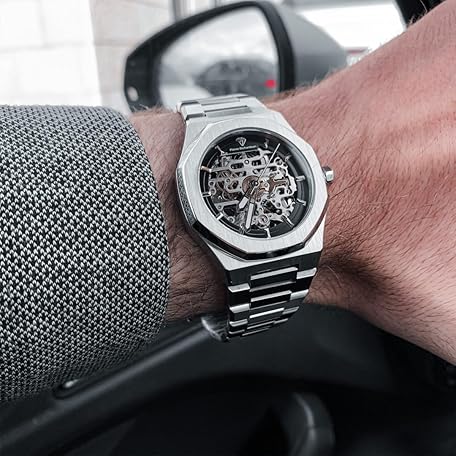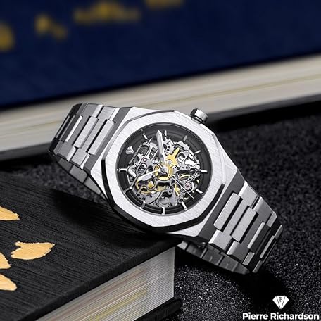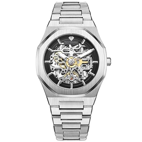PIERRE RICHARDSON PR5721 Men’s Skeleton Watch – Silver Stainless Steel, Automatic, 41mm, Sapphire, 5ATM