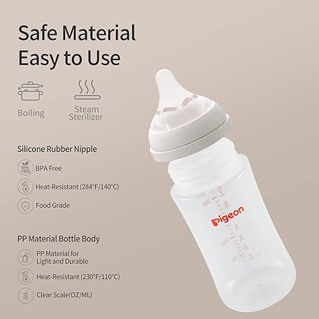Thương hiệu PIGEON là cái tên nổi tiếng được rất nhiều khách hàng trên thế giới chọn lựa. Với kiểu dáng đẹp mắt, sang trọng, sản phẩm PIGEON PP Nursing Bottle Wide Neck, Anti-Colic, Streamlined Body, Natural Feel, Easy to Clean, 8.1 Oz(Pack of 4), Includes 4pcs M Nipples (3m+) là sự lựa chọn hoàn hảo nếu bạn đang tìm mua một món cho riêng mình.