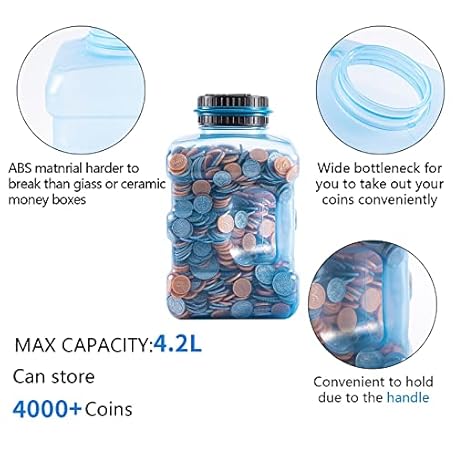 Thông tin sản phẩm Piggy Bank - Large Coin Bank for Adults Boyswith LCD Counter,Great Coin Counter Bank Money Counting Jar with Total Amount Displayed,Best Gift for Kids, Designed for All US Coins(4.2L)