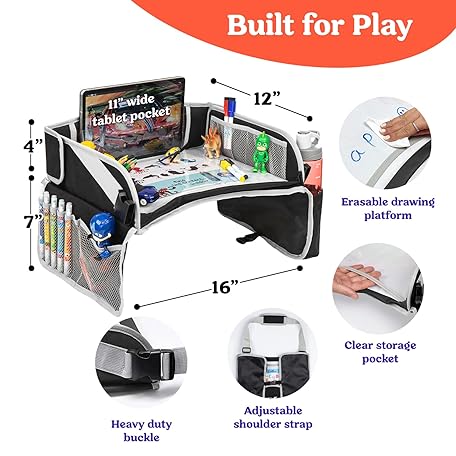 Thông tin sản phẩm PILLANI Kids Travel Tray for Car - Car Seat Tray/Table for Kids Travel, Roadtrip Activities , Road Trip Essential Accessories, Must Have Toddler Lap Desk Organizer for Airplane