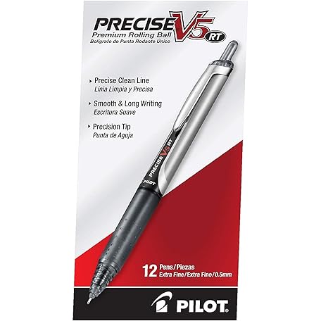 Thông tin sản phẩm Pilot Precise V5 RT Refillable & Retractable Rollerball Pens, Extra Fine Point Pens 0.5 mm, Black, Pack of 12 - Ideal for School, Journaling & Office Writing