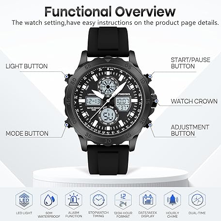 Sản phẩm PINIDOUS Watch for Men Watches Sport Military Waterproof Watches Analog Digital Watches Stainless Steel Watches with Alarm Stopwatch LED Light Hourly Chime Multi-Function Wristwatch đang được bán với giá ưu đãi là $26.1491 tại nước Mỹ.