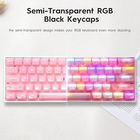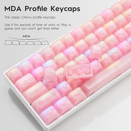 Pink Jelly keycaps, Clear keycaps 115 Keys Set, MDA Profile keycaps Set Transparent Pink Cute Style, Suitable for 60%, 65%, 75%, 80%,85%,100% MX Switch Mechanical Keyboards