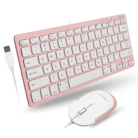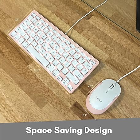• Pink Keyboard and Mouse Combo, Macally Small USB Wired Keyboard and Mouse for Mac and PC Desktop - Improve Aesthetics and Save Space - Mac Keyboard and Mouse Combo with 78 Keys and Silent Buttons