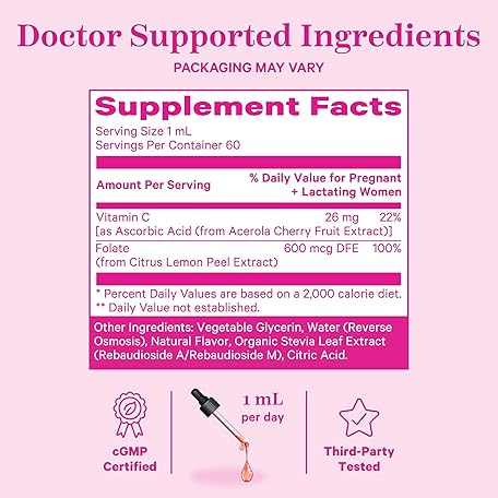 Thông tin sản phẩm Pink Stork Liquid Folate Drops – 5-MTHF Methylfolate B9 Vitamin | Liquid Folic Acid Alternative for Women | Prenatal Folate, Non-GMO, Vegan, Sublingual Methylfolate Supplement | 2 fl oz