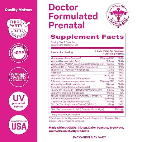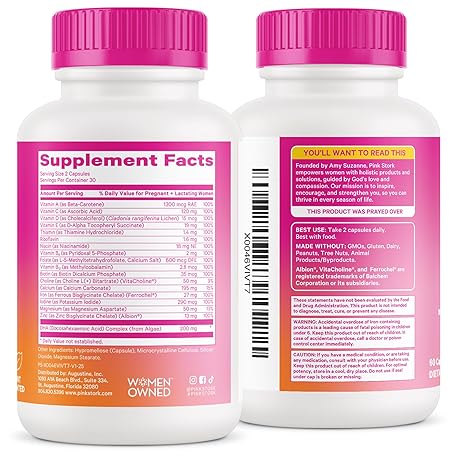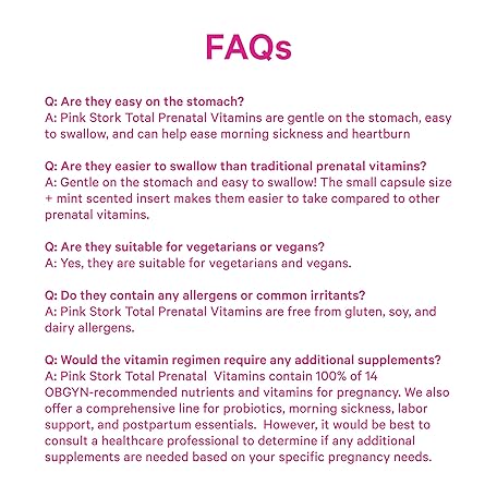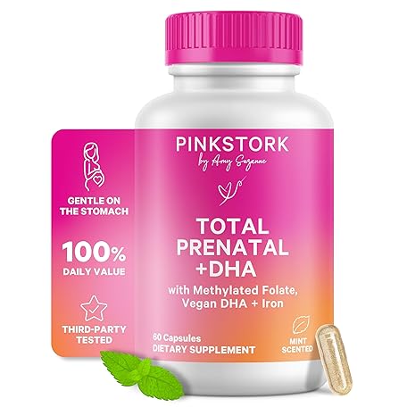 Thông tin sản phẩm Pink Stork Total Prenatal Vitamins for Women | DHA, Folate, Iron, Choline, & Vitamin B12 | Preconception Nutrition | Prenatals for Women, Pregnancy Essentials | Doctor Formulated, 60 Count, Mint
