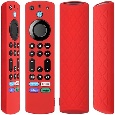 PINOWU Silicone Remote Case (2pcs) for Fire TV Stick 4K Max/Insignia/Pioneer/Omni Series Fire TV Alexa Voice Remote Enhanced w/Lanyard (Green and Red, Only Green Glow)